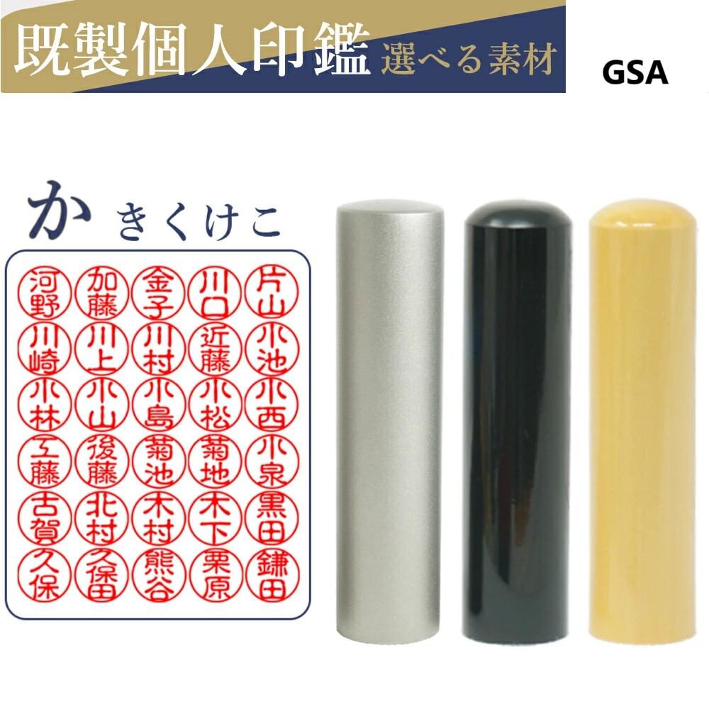 か行から始まる苗字/ 刻印済み 黒水牛 個人印鑑 はんこ 三文判 苗字 ネーム印 認印 丸印 古印体 (10.5mm)